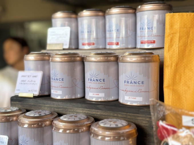Janat Parisの紅茶は、大阪・関西万博のフランスパビリオン1階にある、メゾンカイザーが運営する公式ベーカリー「BOULANGERIE」にて、会場限定フレーバーの紅茶缶や焼き菓子とともに提供されました。