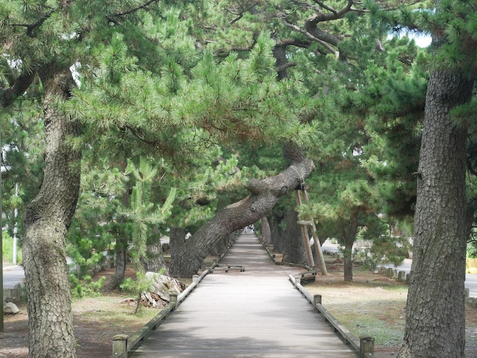 約7kmにわたって続く松林と駿河湾、そしてその先に広がる富士山の雄大な景色は、日本を象徴する風景のひとつ。世界文化遺産の構成資産にも登録されており、その美しさは国内外から高く評価されています。